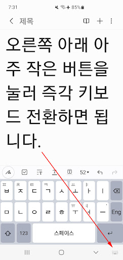 한자 입력은 'eng' 키를 길게 누름으로 선택할 수 있습니다.